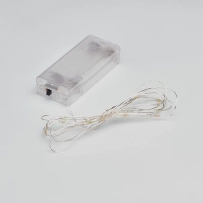 - Includes a string of battery powered LED lights. Two AA batteries required, not included