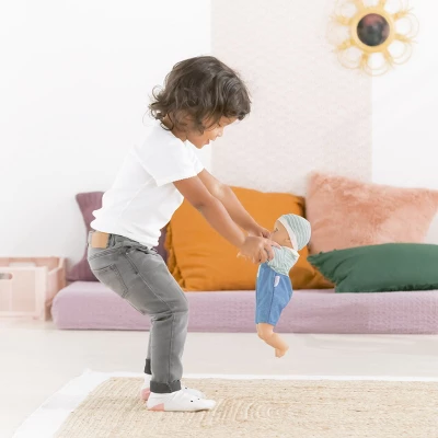 This adorable, soft-bodied baby is perfectly sized for little hands and arms to hold and hug. Features vanilla-scented head, arms, and legs, and eyes that close when the doll is put down to sleep. Just like a real baby, the Calin Mael doll can put its thumb in its mouth. Designed in France. Doll measures 12″. Included: Calin Mael doll with a stocking cap and summer outfit.