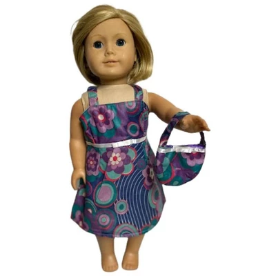 Size 12 matching girl and doll sundresses are polished cotton.The dresses come with matching purses.When laying flat, the dress measures 13 1/4 inches from side seam to side seam at the empire waist.It measures 32 inches from the shoulder to the hemline.The doll dress fits American Girl, Our Generation and My Life dolls.This listing is for one child and one doll dress both with purses, the doll is not included.