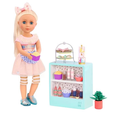 - 61-piece outdoor furniture set: create a dazzling patio and treats café with the Glitter Girls Sweet Shop Terrace for 14-inch dolls!
