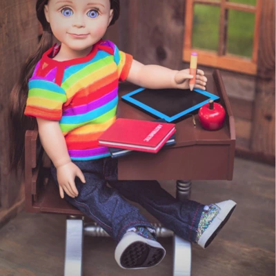 - Historically styled 1940’s wooden school desk sized to be compatible with 18 inch American Girl Dolls.